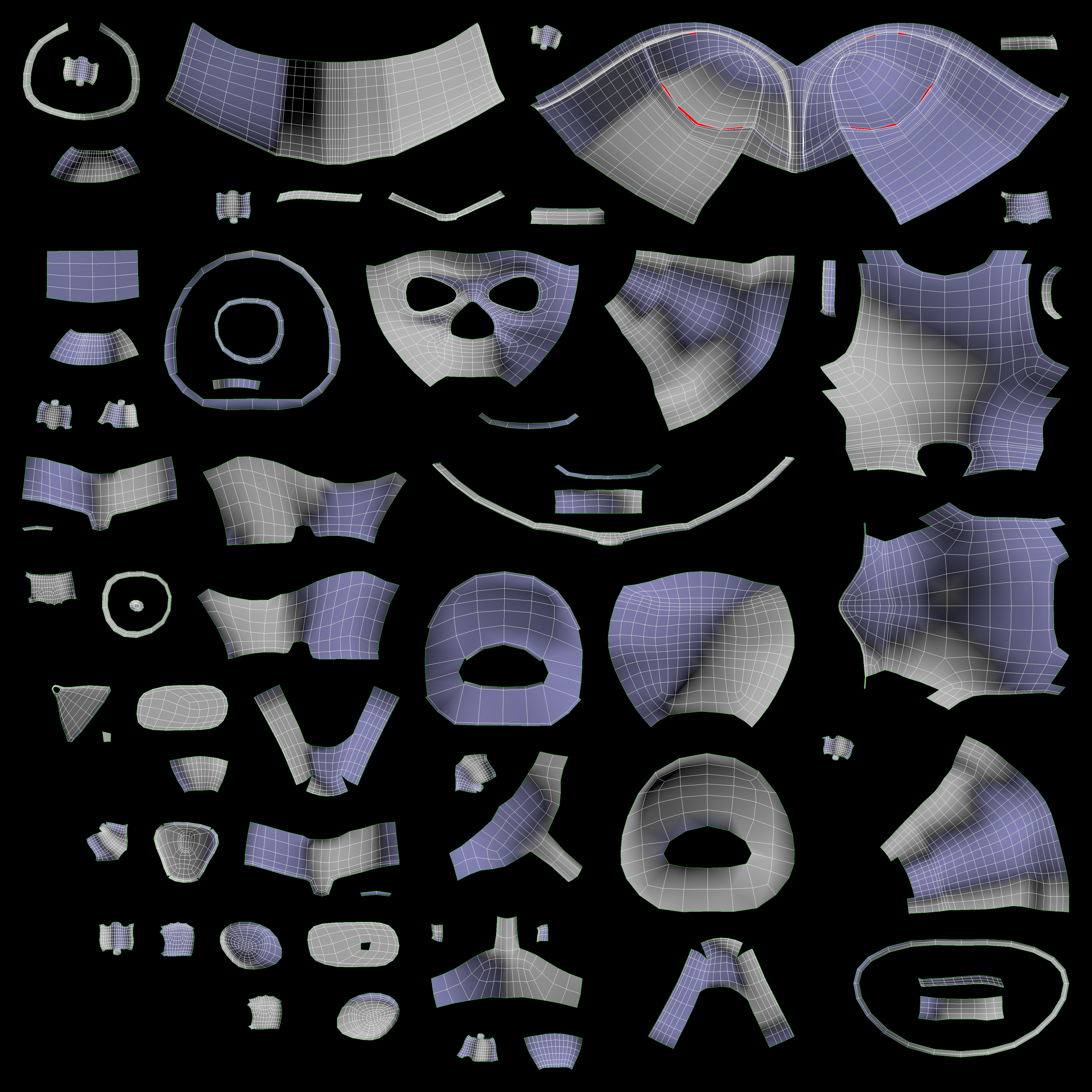 Lo tipico suele ser que tengamos que tener todas la piezas el modelo organizadas en el espacio de trabajo U1V1 que consideramos como la zona de exportación de la textura.