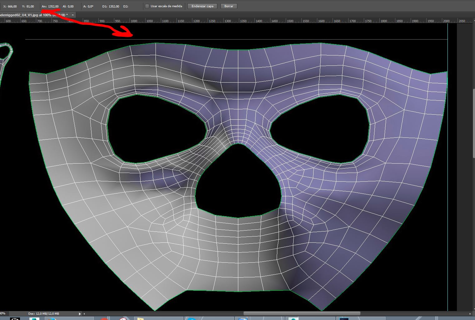 - Si exportamos un «lienzo» de 1024 * 1024 pixels el espacio efectivo para pintar la máscara tiene un ancho aproximado de 200 pixels. Si queremos añadir algún detalle esto es muy poco. Así que la opción siguiente es hacer un lienzo más grande.