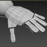 Si bien es necesario procurar no excedernos en polígonos, en algunas zonas no se puede evitar porque por muy sencillo que se pretenda el modelo simepre tendremos que usar más que en otras zonas. Es el caso de las manos que al tener los dedos requieren siempre de un poligonaje mayor. Se puede optar por «optimizar esa zona mediante la interrupción de loops o sencillamente tratando a esa zona como un elemento separado.