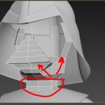 Cuando ya hemos conseguido el cuerpo, las piezas como el uniforme, cinturón o la sujeción de la capa e incluso el panel del pecho pueden ser «derivados» de la forma original del cuerpo. Así conseguimos que las piezas encajen más cómodamente en el personaje final.