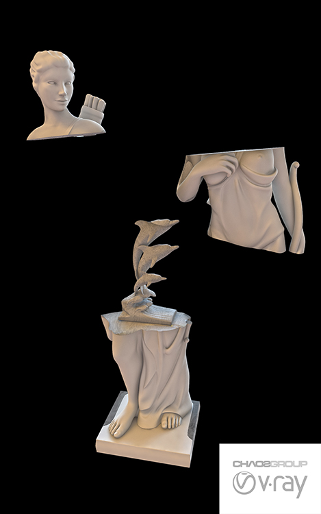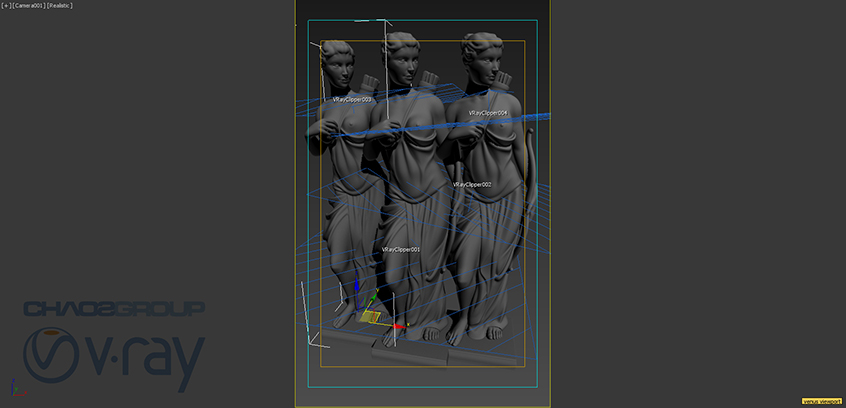 Otra utilidad Muy conseguida es la del vray clipper que funciona como plano de corte en el momento del render para cualquiér objeto. Las únicas condiciones son que la geometría esté «cerrada» y que ninguno de los elementos que intervienen en el clipper se crucen.