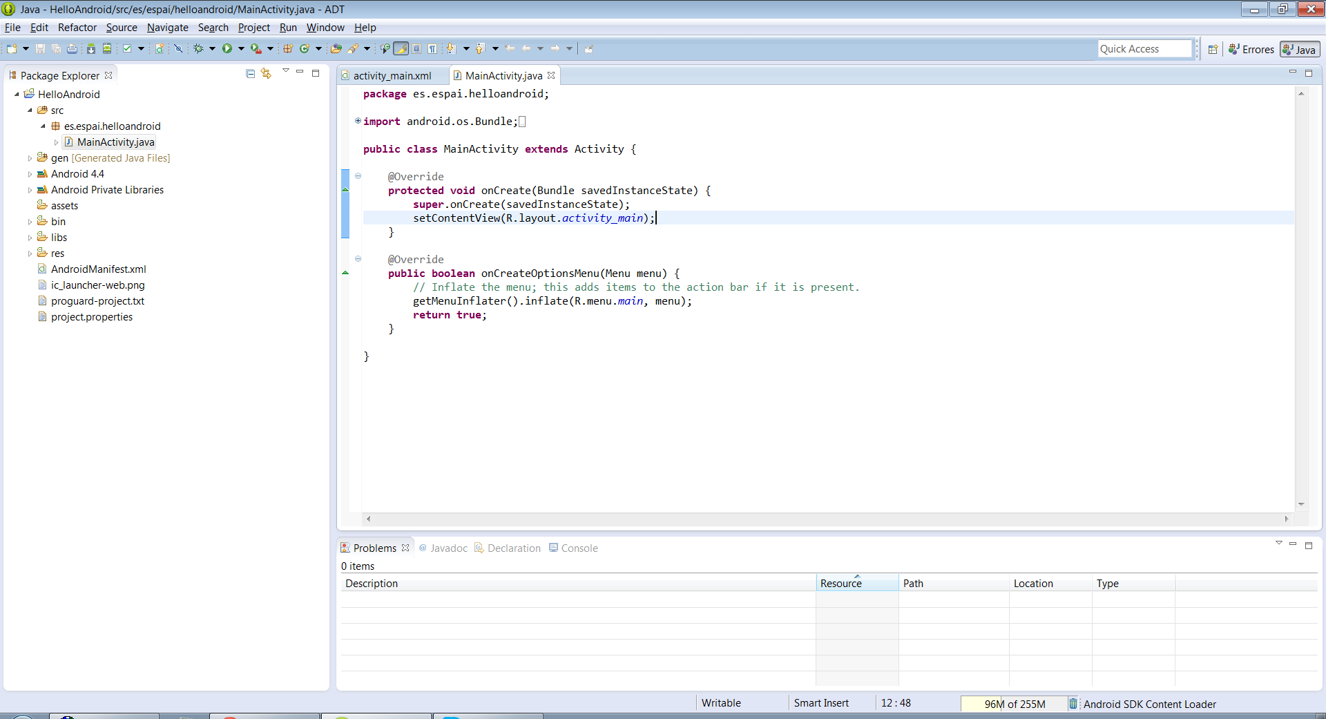 Una vez hayáis abierto ese proyecto, vamos a añadir un Activity que se llamará igual: HelloAndroid