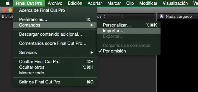 Si queréis instalar y probar estos atajos, podéis clicar aquí para descargarlos (por si no los habéis descargado más arriba). Después, es tan fácil como acudir al menú Final Cut Pro > Comandos > Importar…