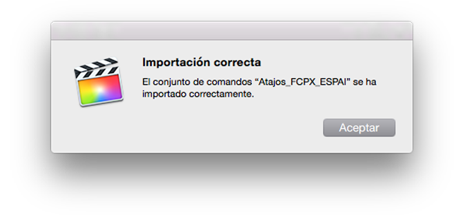 Se abrirá una ventana de navegación del Finder para que escojáis el archivo que acabáis de descargar. Saltará un mensaje para informar que el conjunto de atajos de de teclado (command set) se ha importado correctamente.