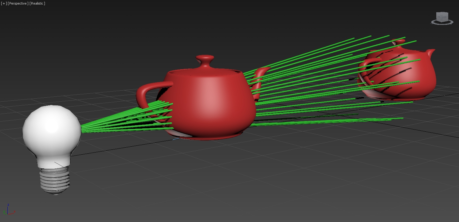 Nuestras fuentes de luz despiden rayos de luz en diferentes direcciones, cada rayo de luz sigue su propio recorrido recto.