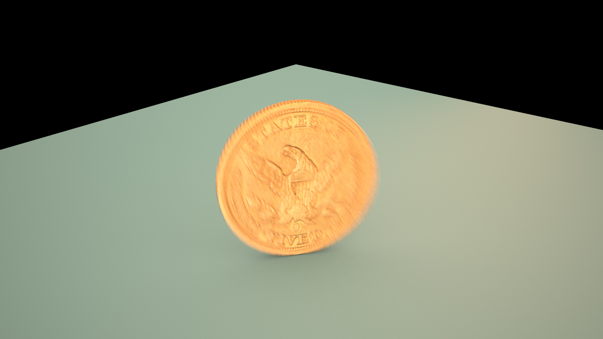 Cuando el desenfoque de movimiento no está activo y capturamos un momento en el giro de la moneda, apreciaremos que no sucede nada en particular y que de no saber que la moneda se mueve podríamos aventurarnos a decir que la moneda está quieta.