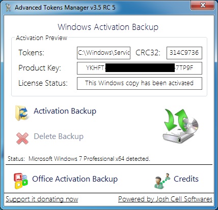 Es por ello, que hacer una copia de la licencia, ya sea antes de realizar la operación de reinstalación o “por si acaso”, es una buena idea para evitar desastres o situaciones incómodas (cómo le vas a decir a un cliente, que su sistema operativo con licencia, ha sido reemplazado por uno pirata, o cobrarle de nuevo por un sistema operativo que ya tenía…). Pues bien, es por ello que un software creado por Josh Cell Softwares, denominado Advanced Tokens Manager, nos va a funcionar a la perfección, para solucionarlo: