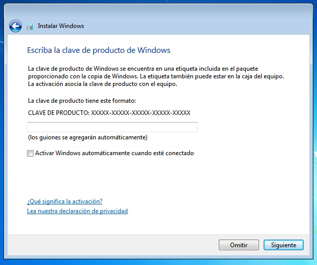 Cuando reinstalemos el sistema operativo, tendremos que introducir la clave que conseguimos anteriormente: