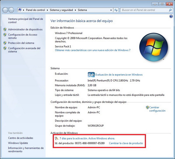 En Status, nos indicará que sistema operativo tenemos (en este caso Windows 7 Professional x64), esto nos sirve para saber qué sistema operativo hemos de reinstalar, es importante saber que no puede ser otra versión, ni tipo (32-64 bit). La otra opción importante es el “product key”, lo que nos indica es la clave actual de Windows, importante y necesario para cuando instalemos de nuevo el sistema operativo, ya que nos lo suele pedir en el procedimiento de re-instalación.