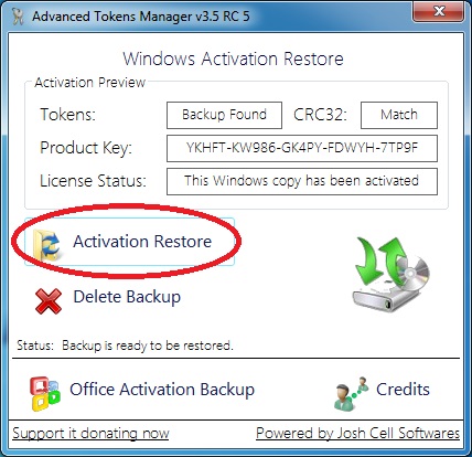 Tan solo nos resta abrir el programa y pulsar el botón de “activation restore”: