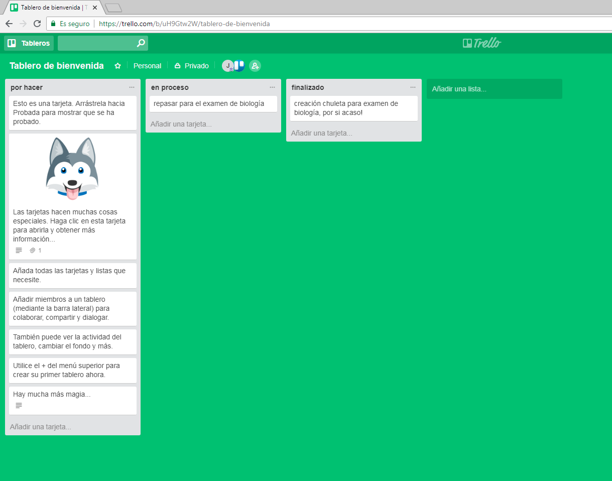Trello es una herramienta que permite organizar la información en listas de tareas. Algo tal que así: