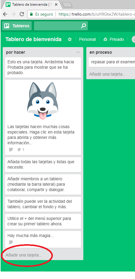 en este tipo de organización, creamos las tarjetas en «por hacer». ¿Y como creamos una tarjeta? haciendo click aqui: