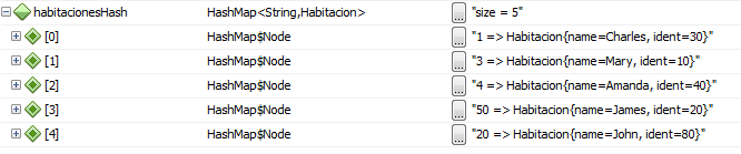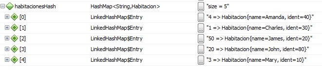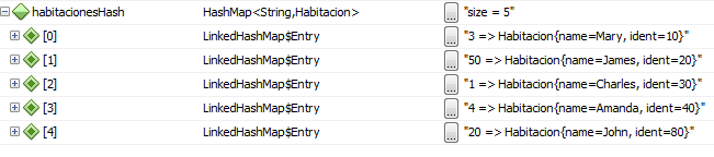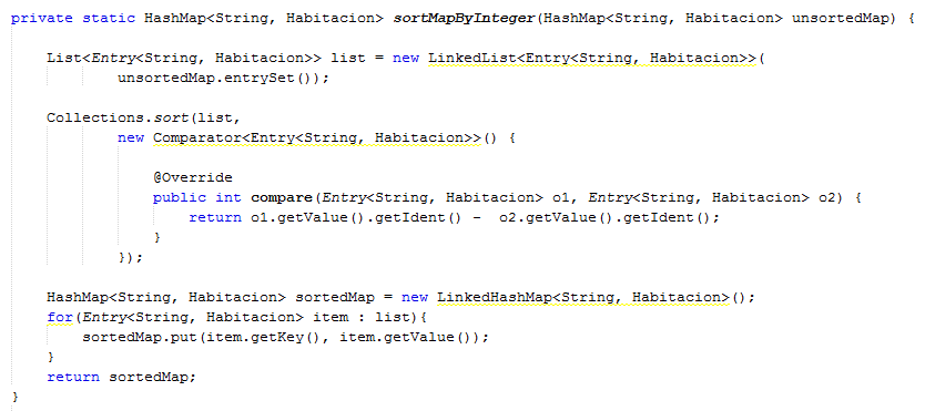 • Ordenación por valor a partir de dato entero. Se pretende ordenar el HashMap a través de un dato entero de la clase Habitacion, en este caso ident.