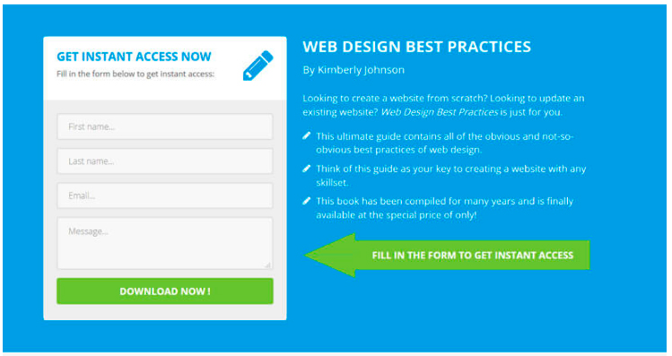 En el caso de la imagen a continuación, la empresa ofrece un ebook gratis que hay que descargar a cambio de la información de contacto del usuario: