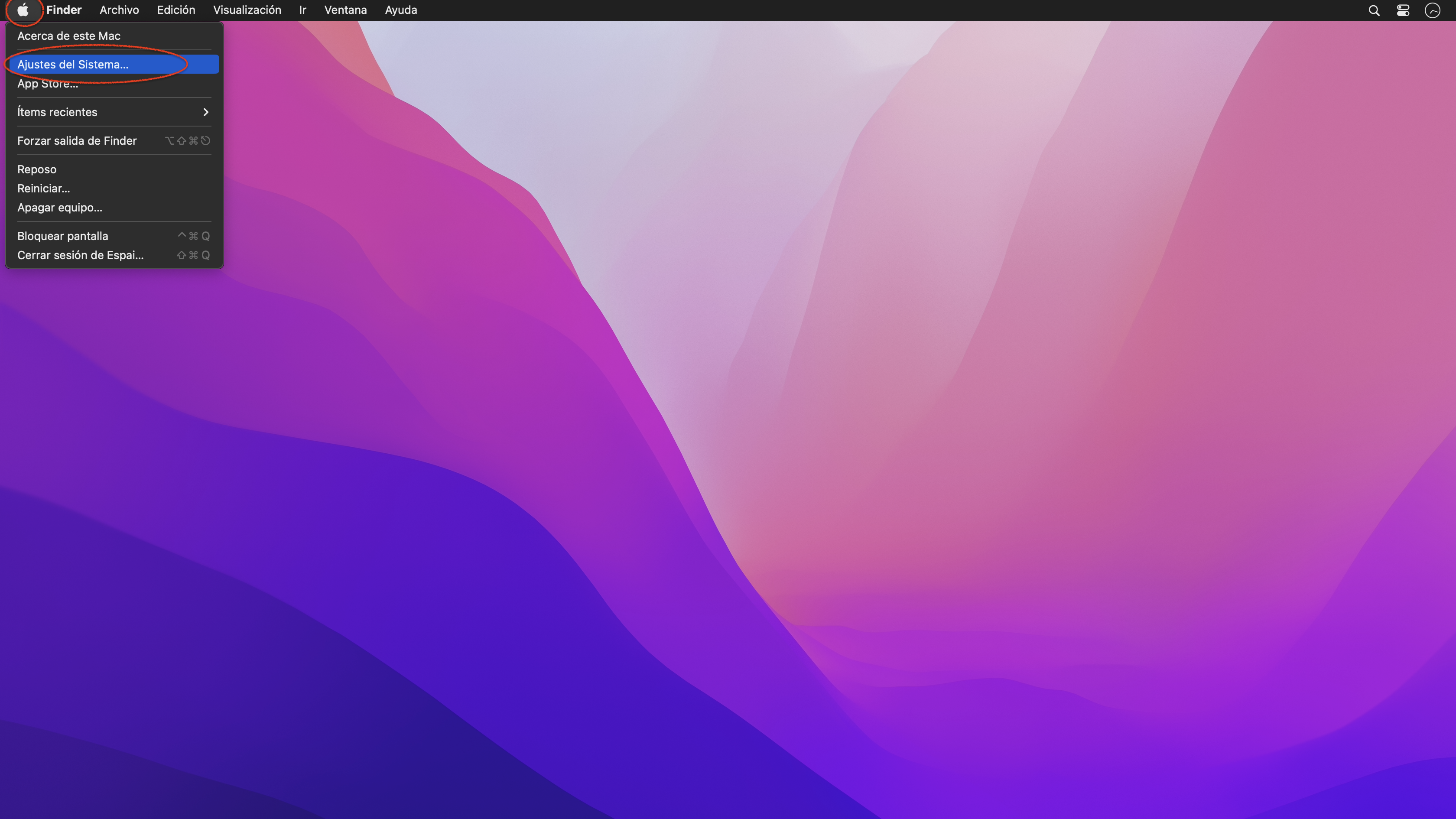 Abrir los Ajustes del sistema, que se encuentran en el menú Apple (el icono de la manzana que hay en la esquina superior izquierda de la pantalla).