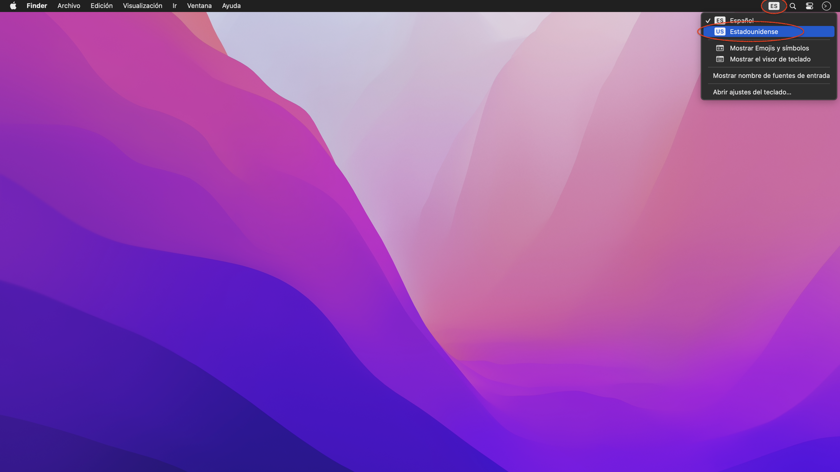 Desde el nuevo icono de la barra de menús se cambia el idioma del teclado.