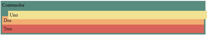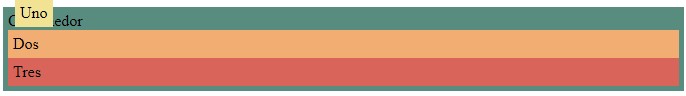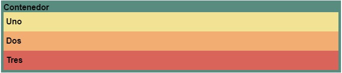 <div class="contenedor"> Contenedor <div class="hijo-uno hijo">Uno</div> <div class="hijo-dos hijo">Dos</div> <div class="hijo-tres hijo">Tres</div> </div>