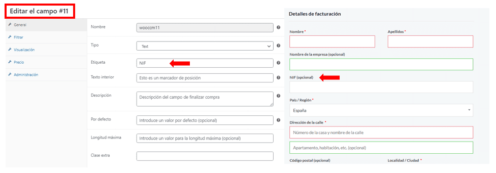 4- Personalizar los campos de formulario de finalizar compra y de envió