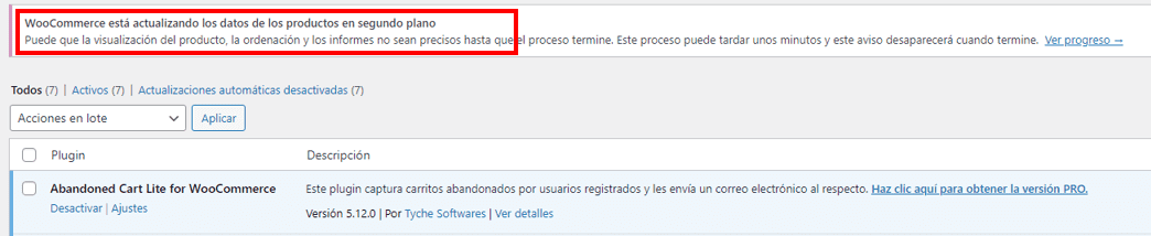 Una vez instalado y activado, nos va pedir actualizar la base de datos para recuperar la información de los carritos abandonados.