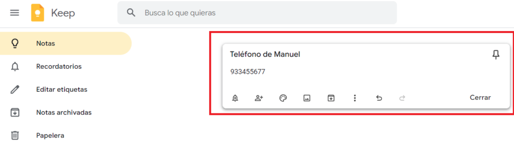 Sí, y de hecho será necesario muy a menudo… Google Keep funciona como un «cajón de sastre» es decir no hay carpetas ni nada similar. Como mucho etiquetas, que veremos en el próximo punto, y de ahí que sea tan necesaria la herramienta de búsqueda.