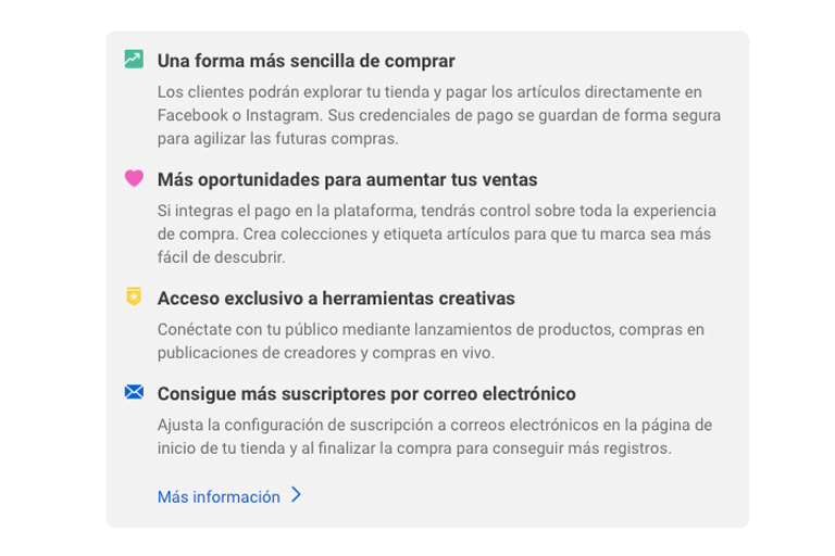 Nadie quiere complicarse con procesos de compra largos y tediosos. Con esta forma de comercio electrónino la experiencia de compra es rápida y sencilla, lo que aumenta la satisfacción del cliente y las tasas de conversión.